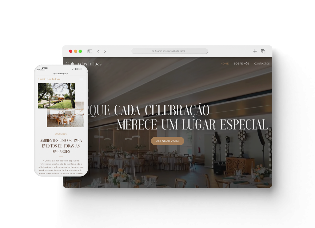 A bespoke WordPress website crafted for Quinta das Tulipas – an elegant event venue in Portugal specialising in weddings, corporate gatherings and celebrations. Optimised for SEO from the ground up, with clear site architecture, engaging content, and a refined aesthetic that mirrors the venue’s sophistication and natural surroundings.